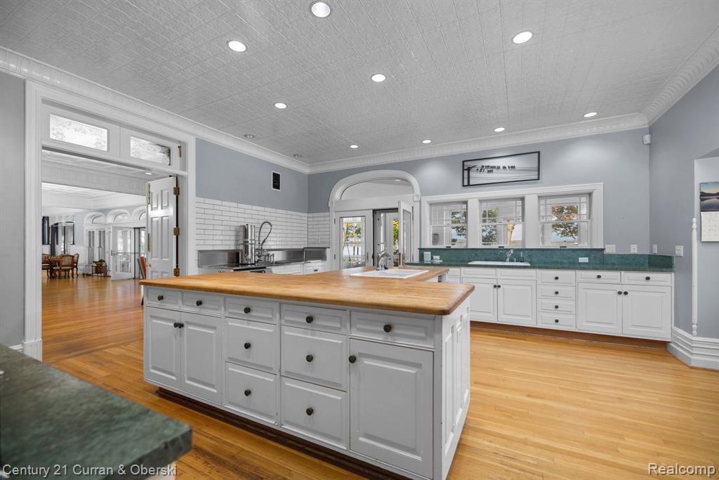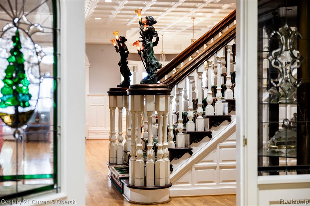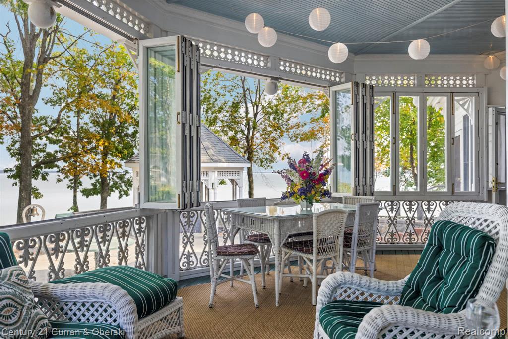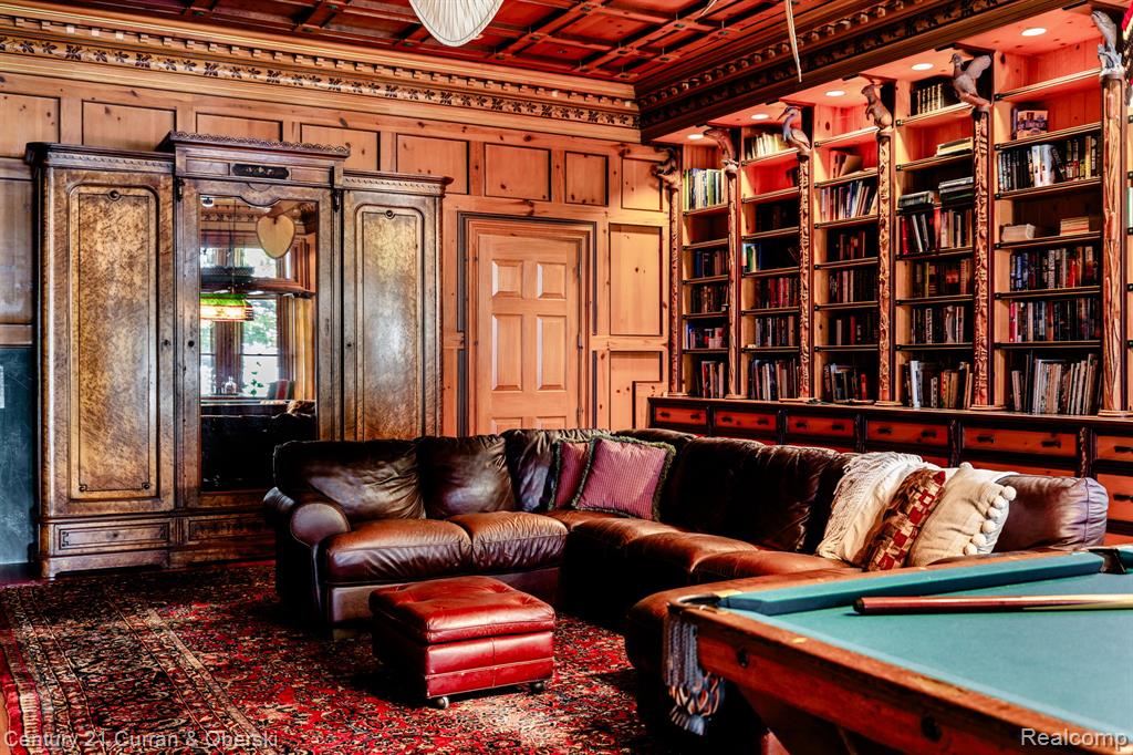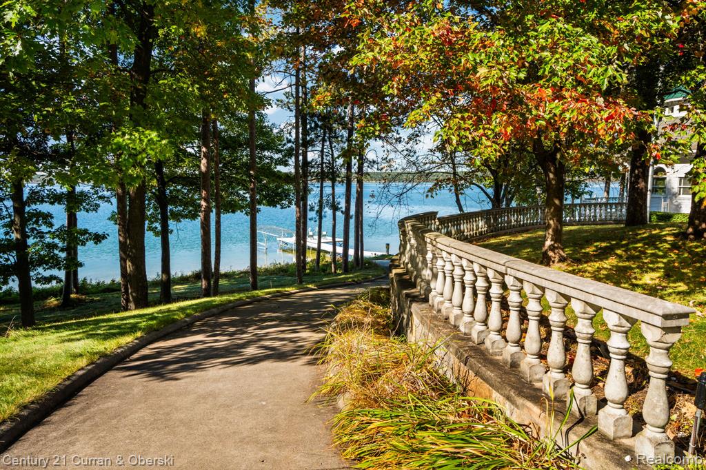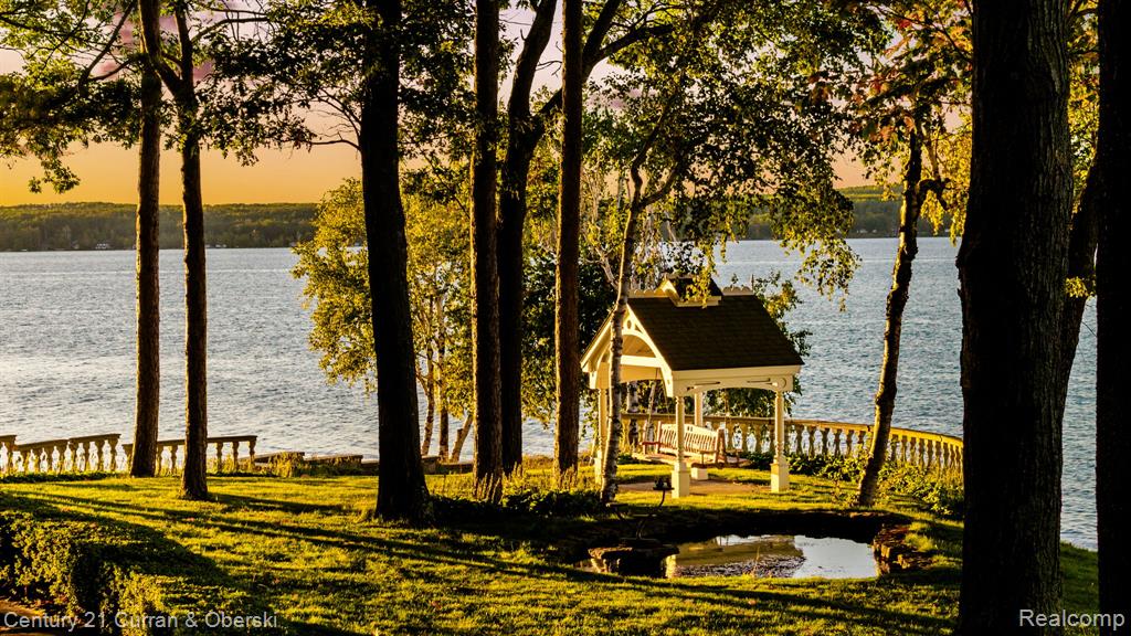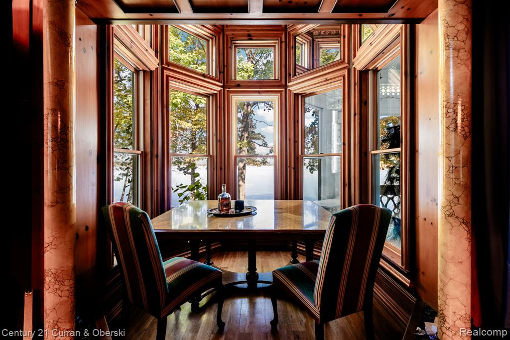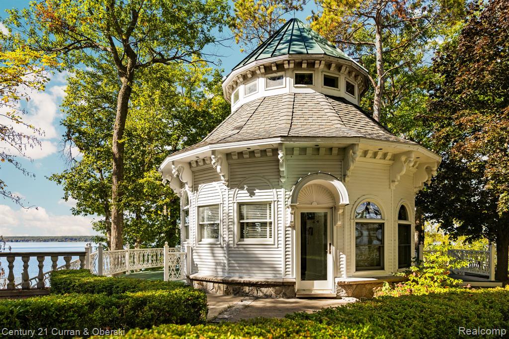 As soon as the gate opens, the quarter-mile driveway leads you into a place so enchanted, some don’t even believe it. Tucked within 14.1 private wooded acres and surrounded by 1,500+ feet of direct Mullett Lake frontage, Red Pine Point stands among Northern Michigan’s most remarkable lakefront estates. The Victorian-inspired main residence offers 15,970 sq. ft. of living space and over 18,000 total finished sq. ft., including in-law and caretaker quarters, multiple garages, and a lakeside gazebo. Built with exceptional craftsmanship, the home features hand-carved millwork, rare Bird’s-eye maple paneling, coffered ceilings, marble fireplaces, and tin-inlaid details. The 1,400-sq. ft. great room centers on a marble fireplace flanked by hand-carved Caryatids with panoramic lake views. A chef’s-grade kitchen offers commercial appliances, dual islands, a walk in pantry and custom cabinetry adjoining both formal and casual dining areas. Additional highlights include an exquisite Library and billiards room, a media room, and wet bar with marble counters and nostalgic ice-cream parlor. The home provides 10 bedrooms and 13 baths, including a primary suite with private veranda, office, and spa-style bath. Structural features include radiant in-floor heat in various places of the home, heated quarter-mile driveway and walkways, attached four-car garage, and multiple auxiliary garages. Outdoor amenities feature stone terraces with balustrades, 131-ft veranda, 75-ft covered lakeside porch, multiple fire pits, manicured walking paths, and a lakeside gazebo with full bath, sitting area, spiral loft, and outdoor hearth. Located along Michigan’s Inland Waterway with boat access to Lake Huron and Mackinac , Red Pine Point offers extraordinary craftsmanship, privacy, and accessibility.