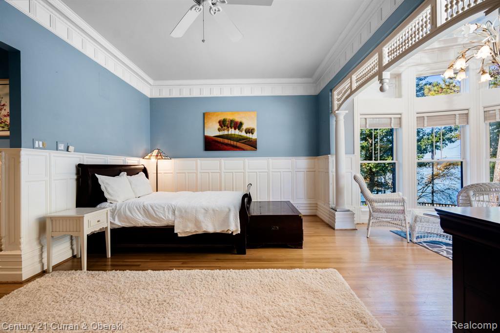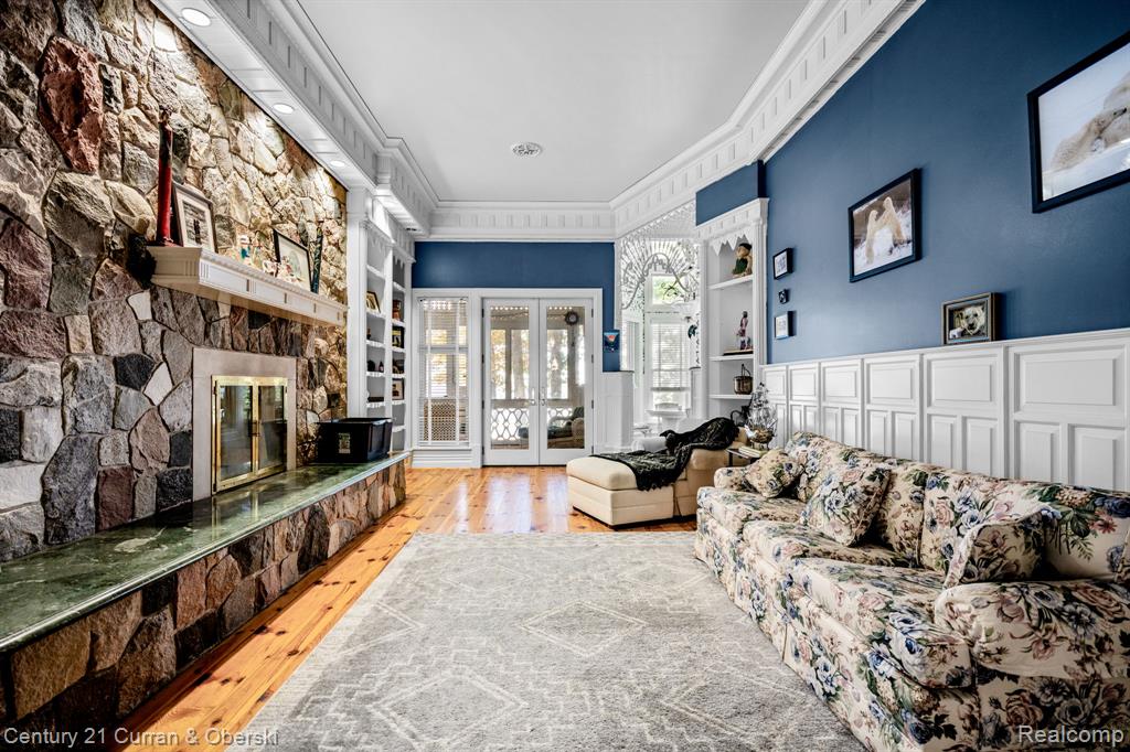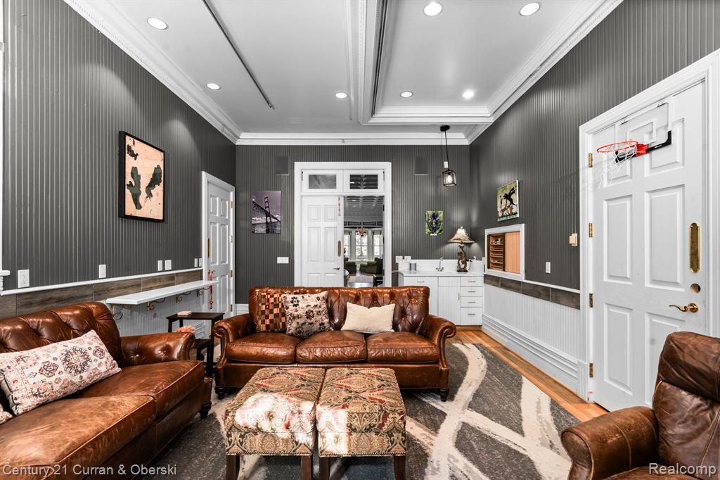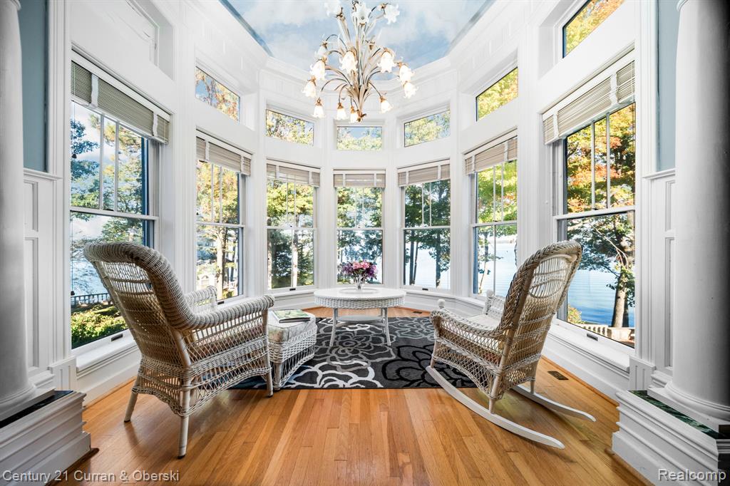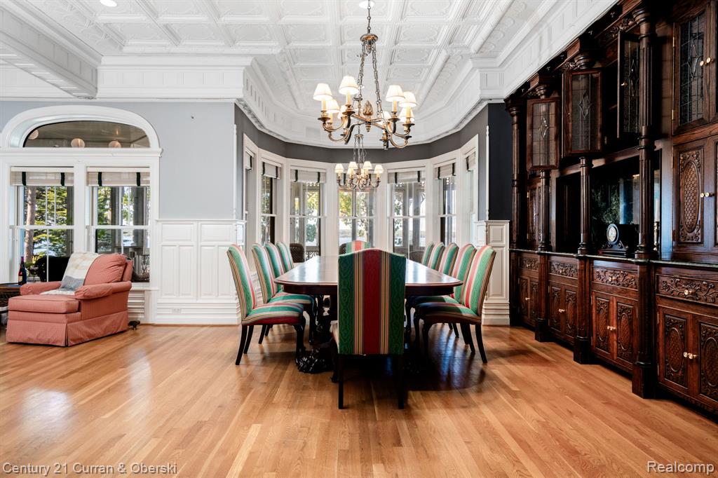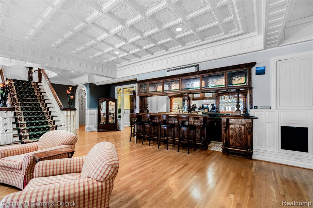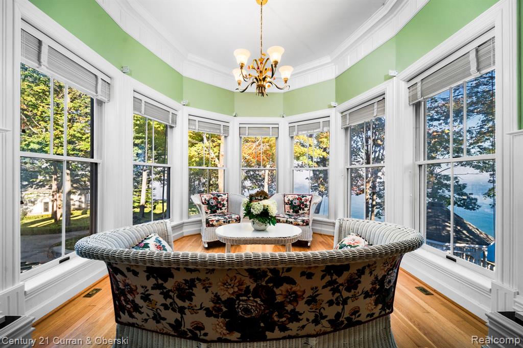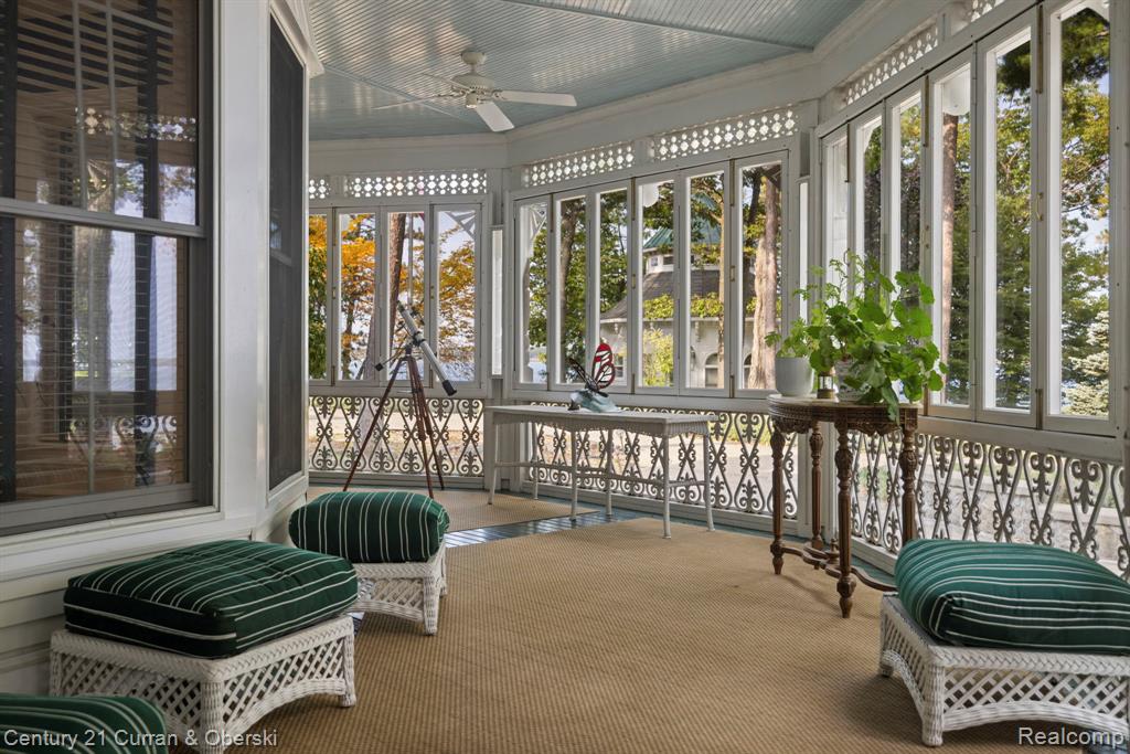As soon as the gate opens, the quarter-mile driveway leads you into a place so enchanted, some don’t even believe it. Tucked within 14.1 private wooded acres and surrounded by 1,500+ feet of direct Mullett Lake frontage, Red Pine Point stands among Northern Michigan’s most remarkable lakefront estates. The Victorian-inspired main residence offers 15,970 sq. ft. of living space and over 18,000 total finished sq. ft., including in-law and caretaker quarters, multiple garages, and a lakeside gazebo. Built with exceptional craftsmanship, the home features hand-carved millwork, rare Bird’s-eye maple paneling, coffered ceilings, marble fireplaces, and tin-inlaid details. The 1,400-sq. ft. great room centers on a marble fireplace flanked by hand-carved Caryatids with panoramic lake views. A chef’s-grade kitchen offers commercial appliances, dual islands, a walk in pantry and custom cabinetry adjoining both formal and casual dining areas. Additional highlights include an exquisite Library and billiards room, a media room, and wet bar with marble counters and nostalgic ice-cream parlor. The home provides 10 bedrooms and 13 baths, including a primary suite with private veranda, office, and spa-style bath. Structural features include radiant in-floor heat in various places of the home, heated quarter-mile driveway and walkways, attached four-car garage, and multiple auxiliary garages. Outdoor amenities feature stone terraces with balustrades, 131-ft veranda, 75-ft covered lakeside porch, multiple fire pits, manicured walking paths, and a lakeside gazebo with full bath, sitting area, spiral loft, and outdoor hearth. Located along Michigan’s Inland Waterway with boat access to Lake Huron and Mackinac , Red Pine Point offers extraordinary craftsmanship, privacy, and accessibility.