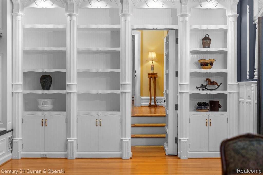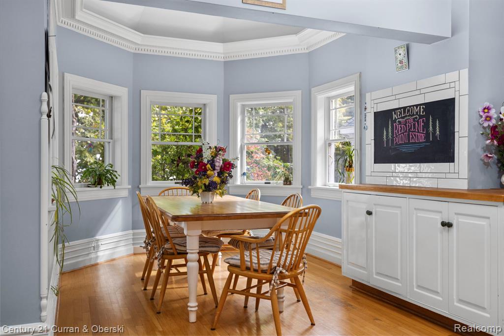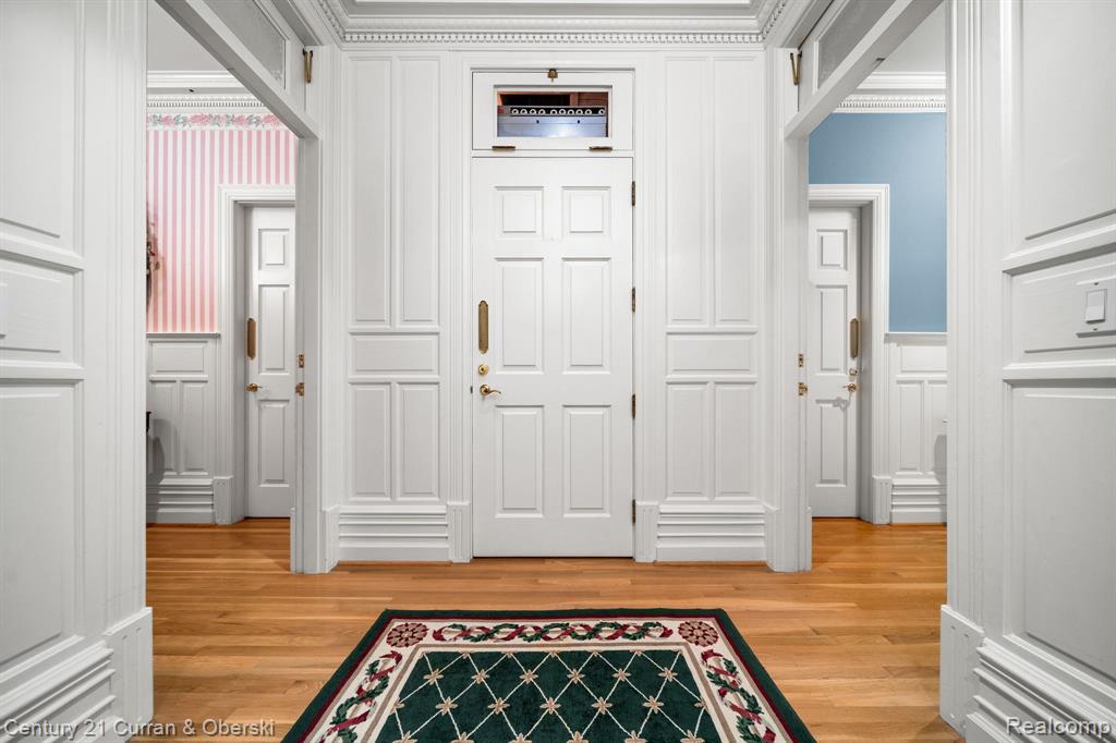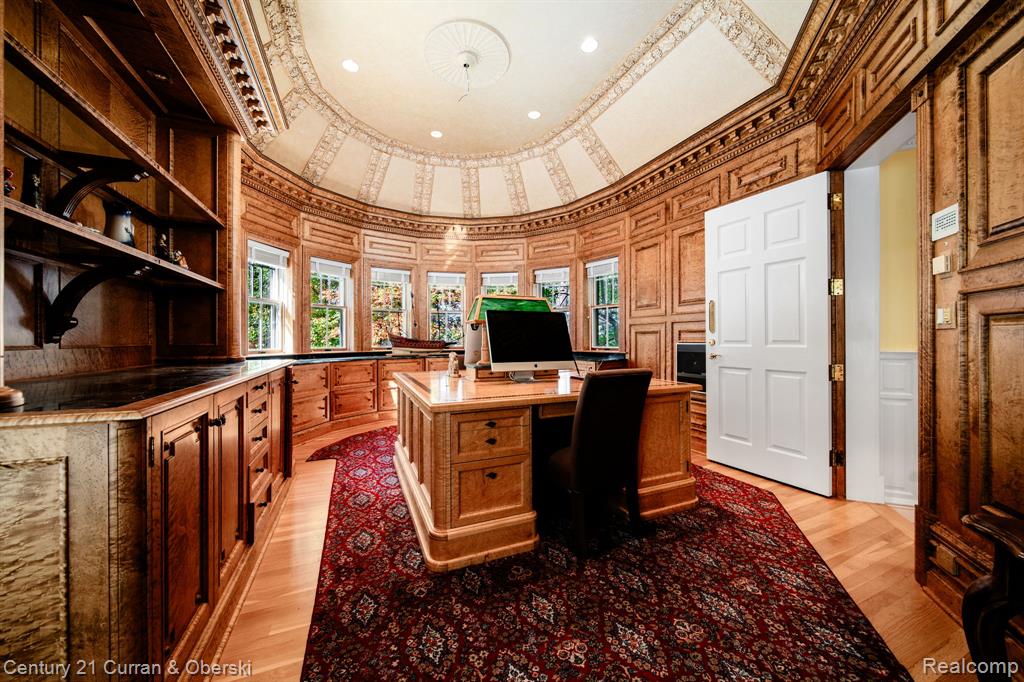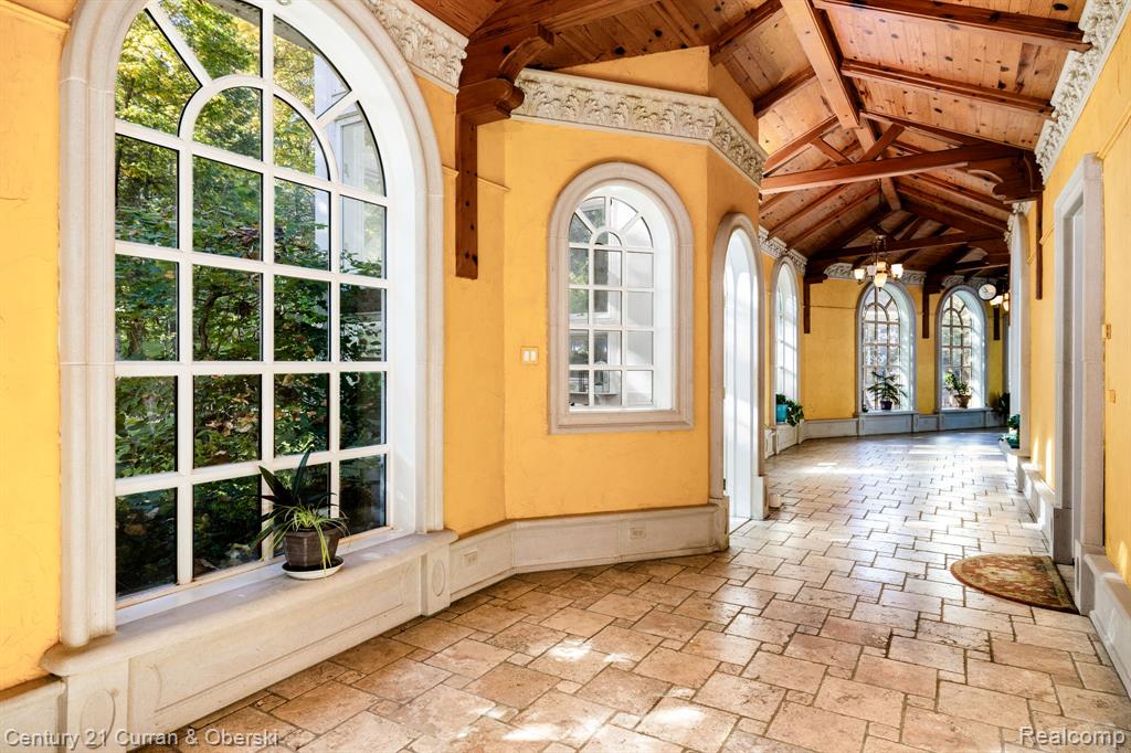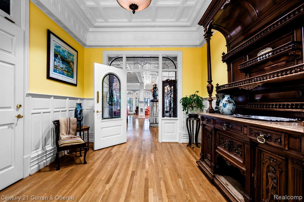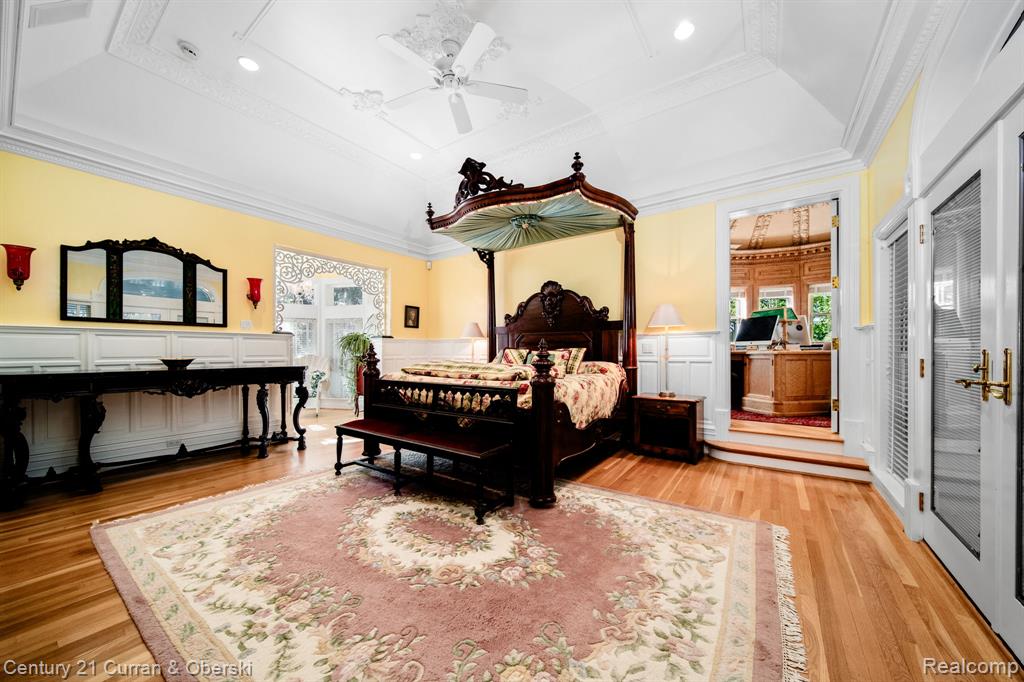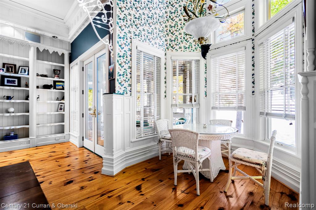 As soon as the gate opens, the quarter-mile driveway leads you into a place so enchanted, some don’t even believe it. Tucked within 14.1 private wooded acres and surrounded by 1,500+ feet of direct Mullett Lake frontage, Red Pine Point stands among Northern Michigan’s most remarkable lakefront estates. The Victorian-inspired main residence offers 15,970 sq. ft. of living space and over 18,000 total finished sq. ft., including in-law and caretaker quarters, multiple garages, and a lakeside gazebo. Built with exceptional craftsmanship, the home features hand-carved millwork, rare Bird’s-eye maple paneling, coffered ceilings, marble fireplaces, and tin-inlaid details. The 1,400-sq. ft. great room centers on a marble fireplace flanked by hand-carved Caryatids with panoramic lake views. A chef’s-grade kitchen offers commercial appliances, dual islands, a walk in pantry and custom cabinetry adjoining both formal and casual dining areas. Additional highlights include an exquisite Library and billiards room, a media room, and wet bar with marble counters and nostalgic ice-cream parlor. The home provides 10 bedrooms and 13 baths, including a primary suite with private veranda, office, and spa-style bath. Structural features include radiant in-floor heat in various places of the home, heated quarter-mile driveway and walkways, attached four-car garage, and multiple auxiliary garages. Outdoor amenities feature stone terraces with balustrades, 131-ft veranda, 75-ft covered lakeside porch, multiple fire pits, manicured walking paths, and a lakeside gazebo with full bath, sitting area, spiral loft, and outdoor hearth. Located along Michigan’s Inland Waterway with boat access to Lake Huron and Mackinac , Red Pine Point offers extraordinary craftsmanship, privacy, and accessibility.